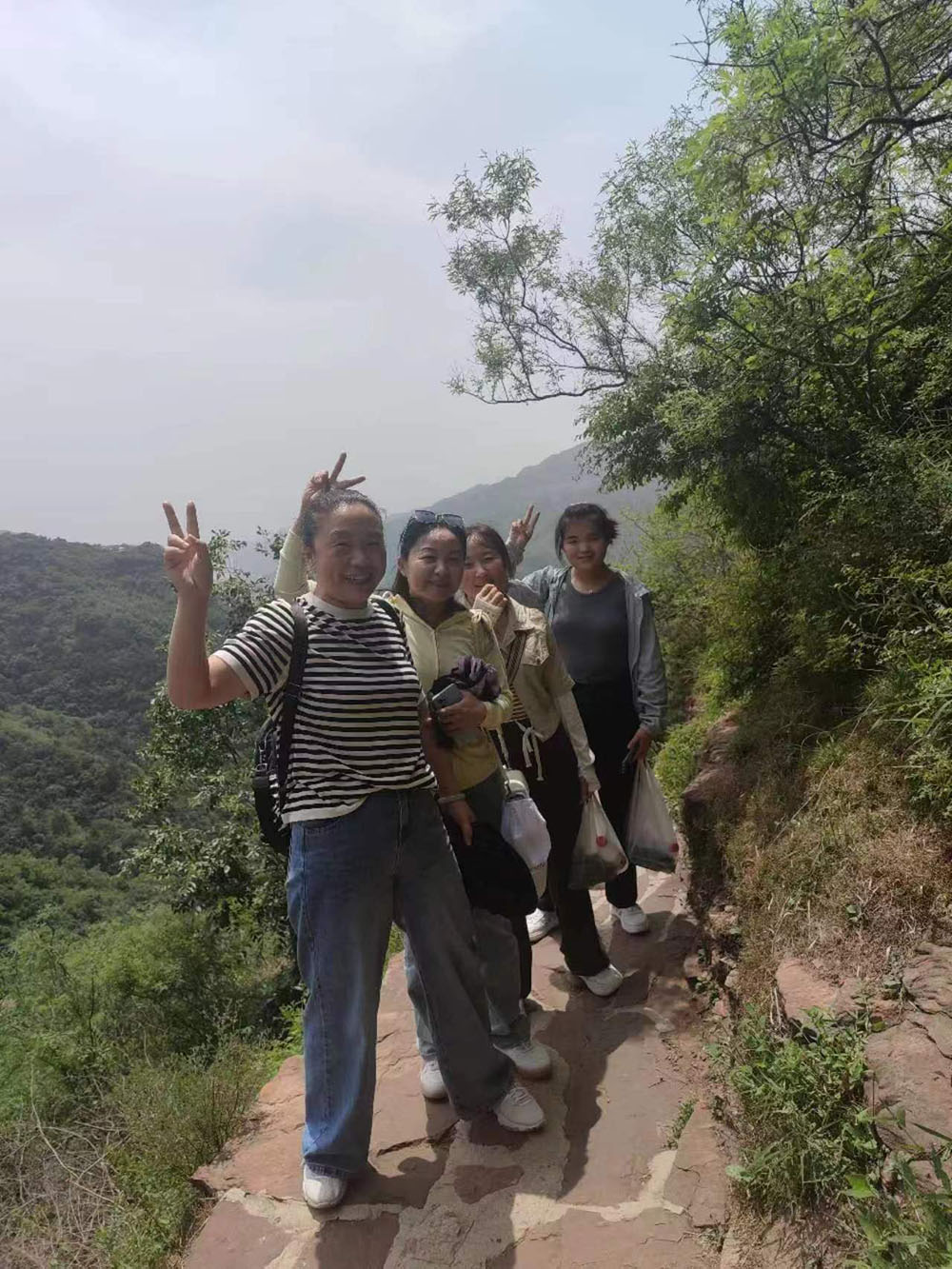 到達(dá)景區(qū)后,大家乘坐景區(qū)內(nèi)小火車(chē)來(lái)到趙匡胤千里送京娘的青銅雕像前合影留念。撫摸著青銅雕像,品味著這個(gè)凄美的愛(ài)情故事,感慨萬(wàn)千。隨后,大家乘上游船,欣賞京娘湖碧波蕩漾的旖旎風(fēng)光,感受著一線天峰林絕壁的壯美風(fēng)景。到達(dá)碼頭后,大家拾級(jí)而上開(kāi)始登山。隊(duì)伍分為前鋒、后營(yíng)、中軍,團(tuán)隊(duì)前后呼應(yīng),協(xié)調(diào)行動(dòng)。上山的路雖然很陡峭曲折,有的路段甚至沒(méi)有臺(tái)階,但大家相互鼓勵(lì),相互加油,堅(jiān)持著向上攀登,向上攀登。中午,在山里人家簡(jiǎn)單用餐后小憩一會(huì)兒,午后繼續(xù)向山頂發(fā)起沖鋒。每當(dāng)大家疲憊至極時(shí),就停下來(lái)休息一下,吹著清爽怡人的山風(fēng),回眸走過(guò)的山路,又是一番別樣的風(fēng)景,一身的疲憊和勞累一掃而光。短暫休息后,大家繼續(xù)向上攀登,有的員工走不動(dòng)了,落在了后面,大家就扶一把,拉一把,幫助他們跟上隊(duì)伍。在大家的共同努力下,終于成功登上了宋祖峰的頂峰,整個(gè)團(tuán)隊(duì)沒(méi)有一個(gè)人掉隊(duì)。特別是車(chē)間女工表現(xiàn)的非常頑強(qiáng),體現(xiàn)了不怕苦不怕累、積極向上的精神風(fēng)貌。團(tuán)隊(duì)的一些老員工,還有員工家屬,不管是老人還是孩子,都表現(xiàn)的很好,堅(jiān)持到了最后,站上了峰頂。